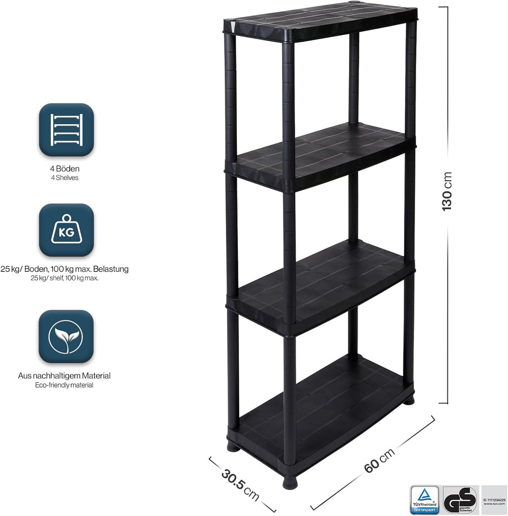 - ☑ ALLE INFOS ZUM REGAL - Marke: Kreher | Modell: Primo | Masse BxTxH in cm: 60 x 30.5 x 130 cm | Anzahl Böden: 4 | Traglast pro Boden: 25 kg | Belastbarkeit Gesamt: 100 kg | Lieferumfang: 1 Regal | Farbe: Grau | Material: Kunststoff, recycelt |