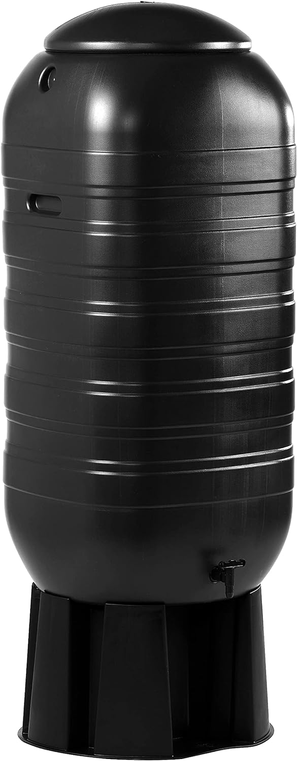 - Ausstattung: Inklusive einem Stand, einem Füllautomaten zum Befüllen über die Regenrinne und einem Wasser- bzw. Ablaufhahn