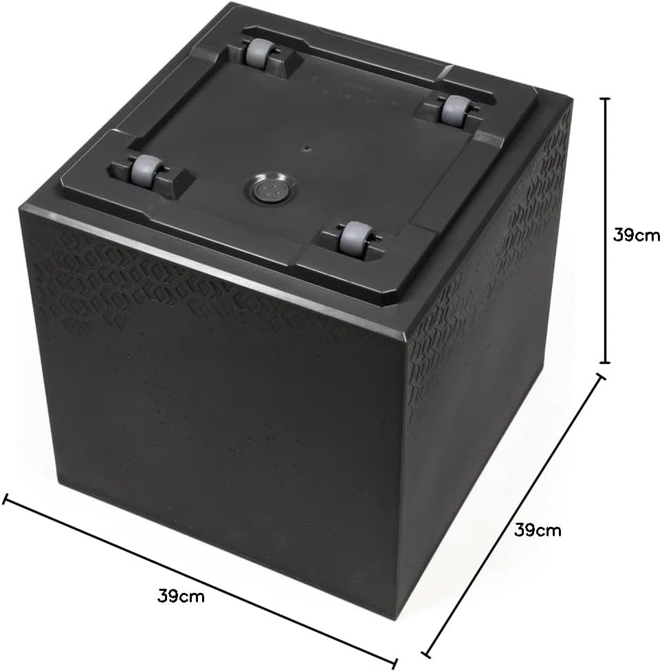 - 🌱 ALLE INFOS ZUM ARTIKEL - Kreher XL Pflanzkasten Karo | Volumen: ca. 36 Liter | Aussenmass: 39 x 39 x 39 cm | Design: Beton-Optik | Ausstattung: Wasserspeicher, Entwässerungs-Loch am Boden mit Kappe, Rollen [optional zu montieren] | Finish: Matt |