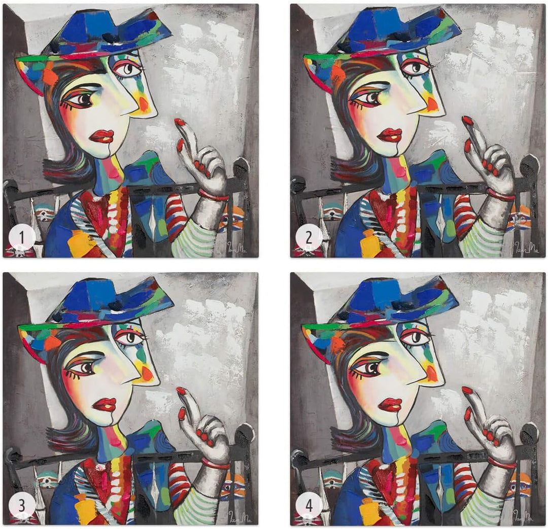 KunstLoft Leinwandbild | 100% HANDGEMALT | 80x80cm | Gemälde 'Double Life' | Frau | Bunt Grau | Wand