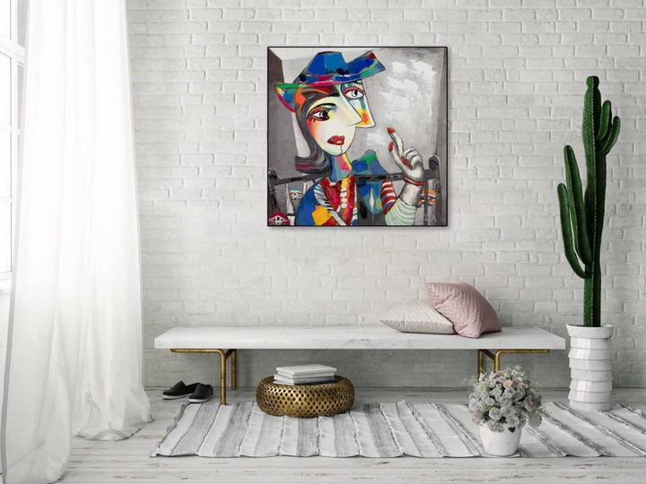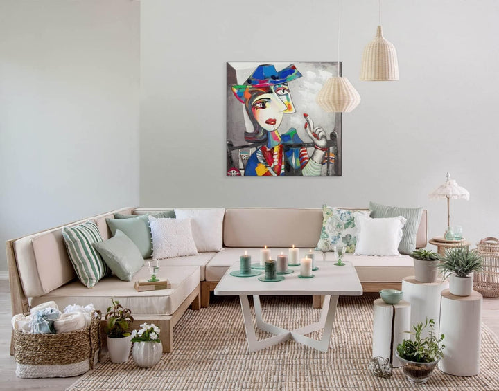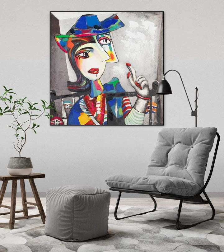 • 🟠 Motiv: Frau | Bunt Grau | 80x80cm