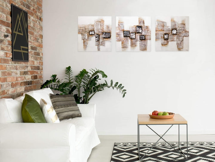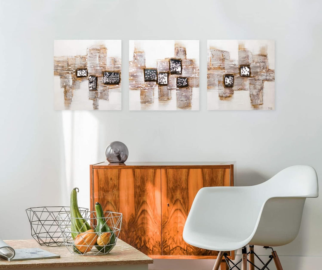 - Das Acrylbild 'Trinitarian Doctrines' ist 150x50cm gross und ein handgemaltes und modernes Kunstwerk mit Motiv 'Abstrakt Vierecke'. Kein minderwertiger Druck - Sie spüren die kräftige Textur der Acrylfarben. Farbe(n): Braun Jedem Kunstwerk liegt ein