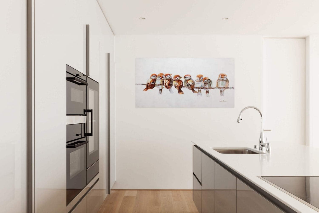 KunstLoft Leinwandbild | 100% HANDGEMALT | 120x60cm | Gemälde 'Happy Family Reunion' | Flugvögel | G