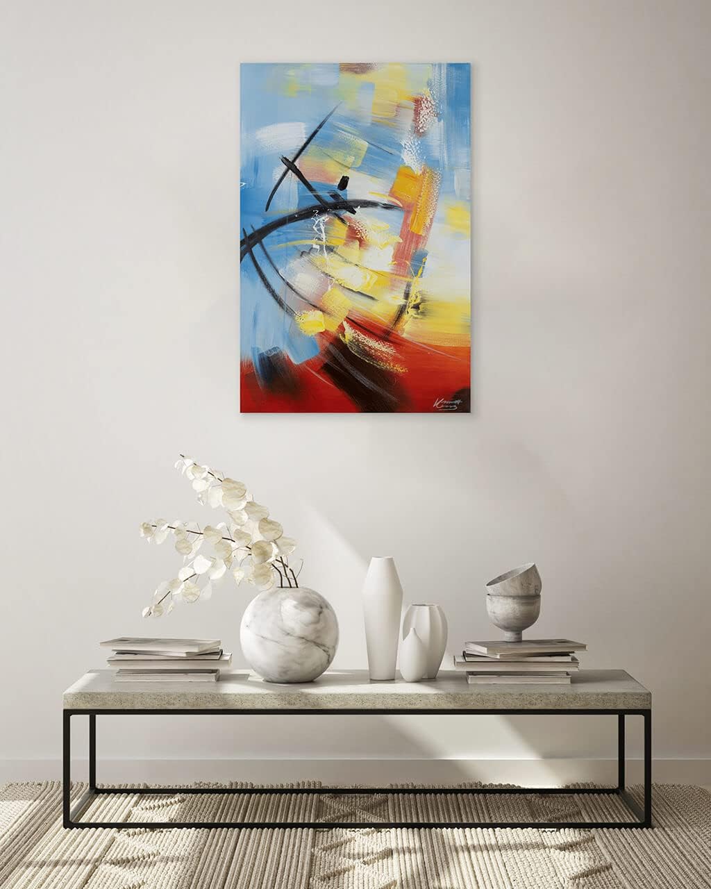 - 🟡 Aufgespannt auf einem Massivholz-Keilrahmen (3,5cm). Sofort aufhängbar. Sie benötigen keinen Bilderrahmen.