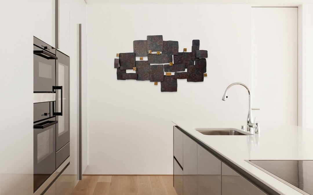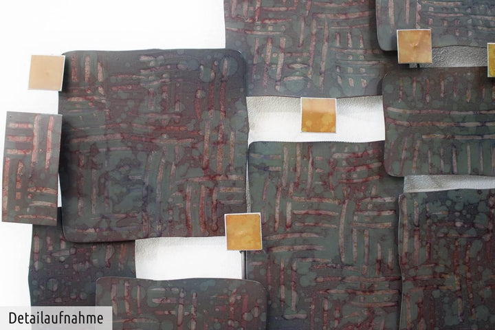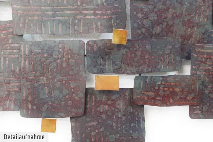 - 🔵 'Stone Collage' ist zu 100% HANDGEFERTIGT. Unregelmässigkeiten in Form kleiner Abschürfungen oder Dellen sind für die aufwendige Handarbeit charakteristisch. Der Wanddeko Metall liegt ein hochwertiges Echtheitszertifikat bei.