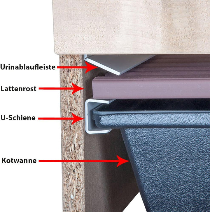 - Hochwertige Kunststoff-Kotwanne aus deutscher Eigenproduktion.