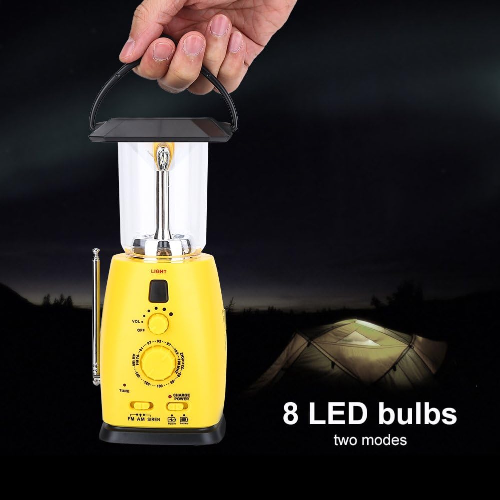 - 【Weit verbreitete Anwendung】 - Diese wiederaufladbare Solarlaterne ist eine Ideenlampe für Camping, Wanderfischen, Reisen, Notfallabenteuer im Freien und den Heimgebrauch. Es verfügt über ein Radio, das eine breite Palette von Rundfunksendungen einschliesslich UKW/AM für Ihre Lieblingsmusik, Nachrichten, Sport, Verkehr und andere Programme umfasst, so ist es ein guter Artikel, um langweilige Zeit für Outdoor-Aktivitäten zu töten.