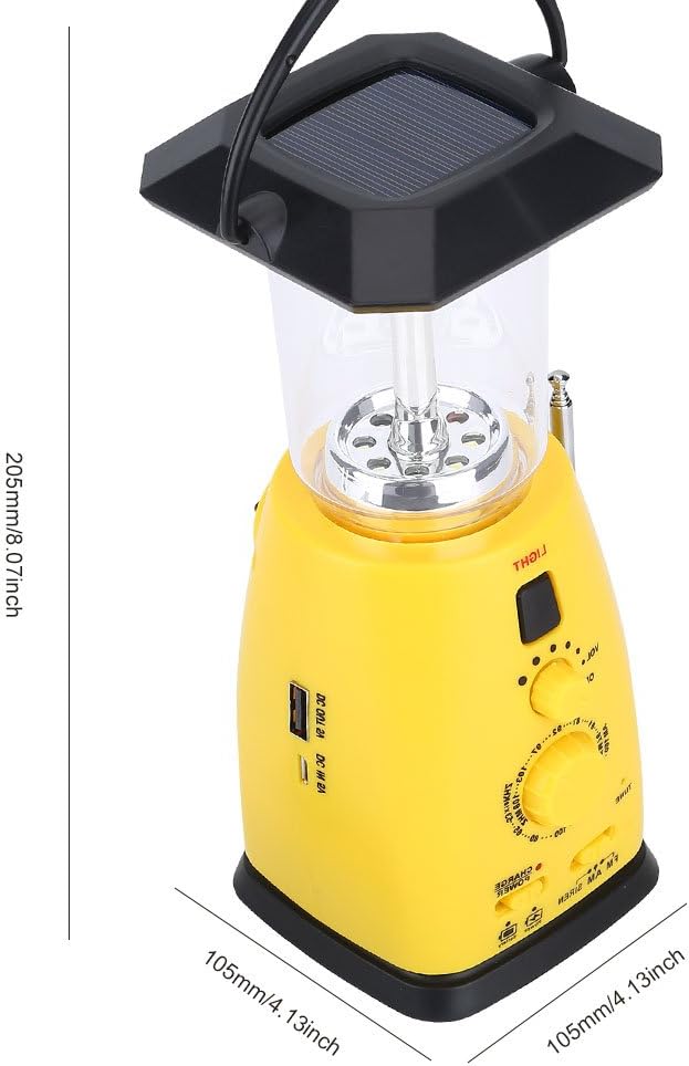 - 【Handkurbel-LED-Blitz】 - Diese notfallradio Campinglampe hat 8 LED Birnen für helle Beleuchtung, diese LED Lampe hat auch zwei wählbare Modi, niedrig oder hoch. Die klare Lampenschale ist gut für eine sanfte Beleuchtung, notfallradio kurbel solar usb mit einem Griff zum Halten mit den Händen oder zum Aufhängen. Grösse (L * B * H): Ca. 105 * 105 * 205 mm / 4,13 * 4,13 * 8,07 Zoll