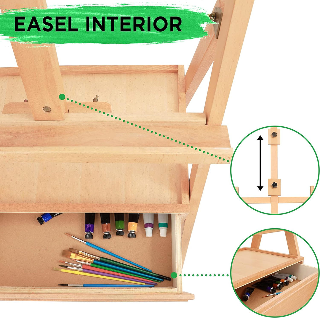 - TIEFE SCHUBLADE ZUM AUFBEWAHREN: Die Schublade zum Aufbewahren von Malzubehör misst L 40 cm x B 27 cm x H 7,5 cm und kann komplett herausgenommen werden. Mit diesem Aufbewahrungs-Koffer können Pinsel, Farben, Filzstifte, Stifte, Papier, Zeichenblock