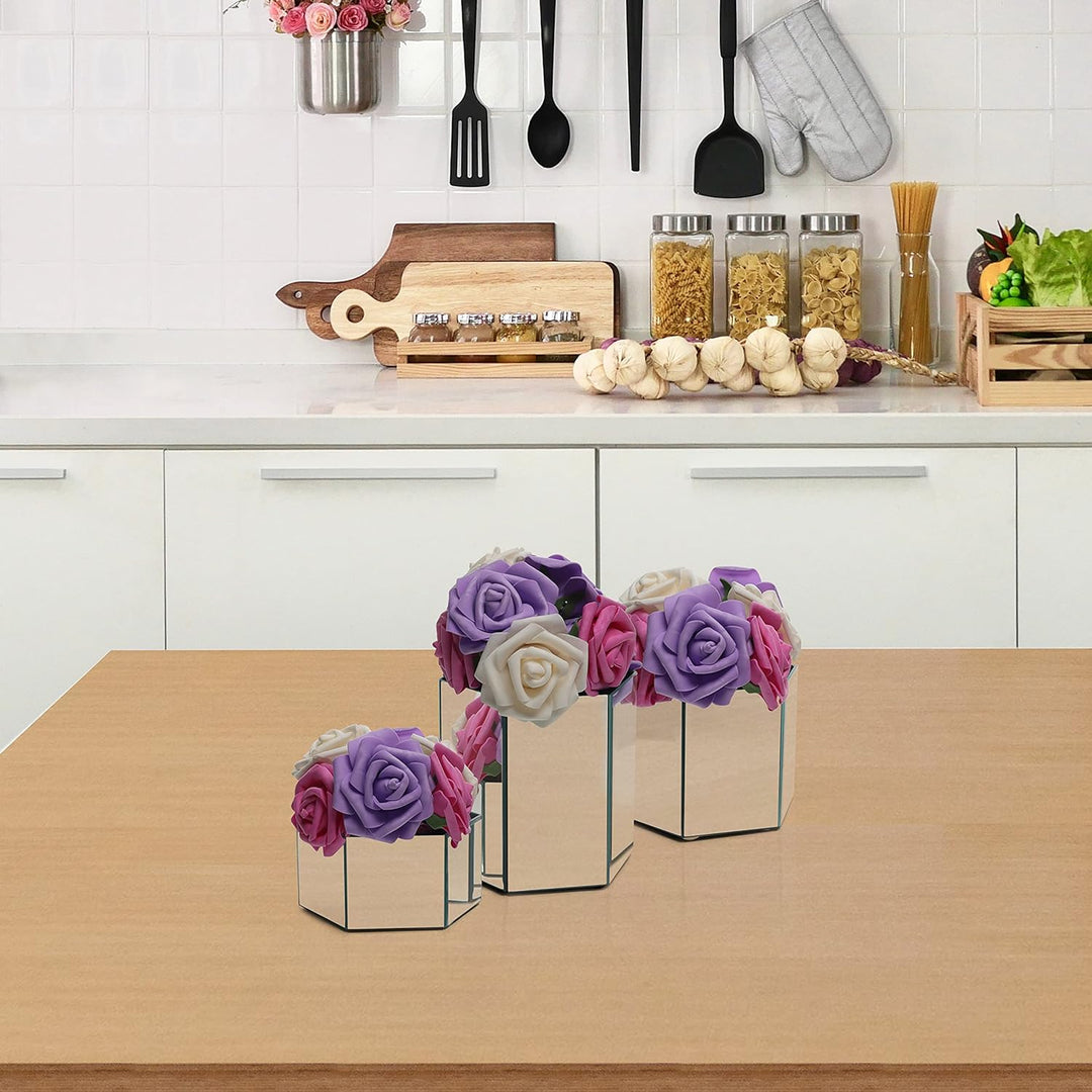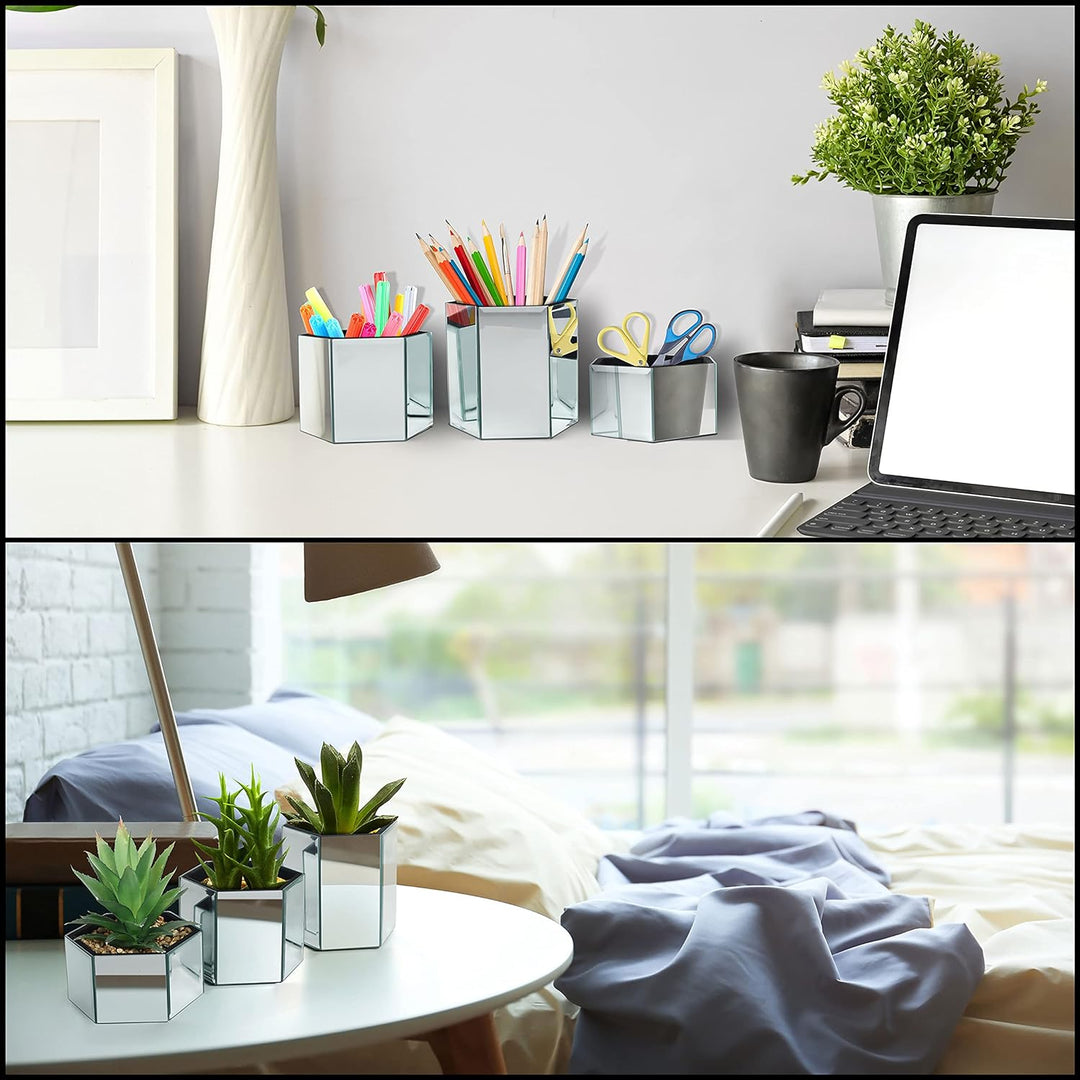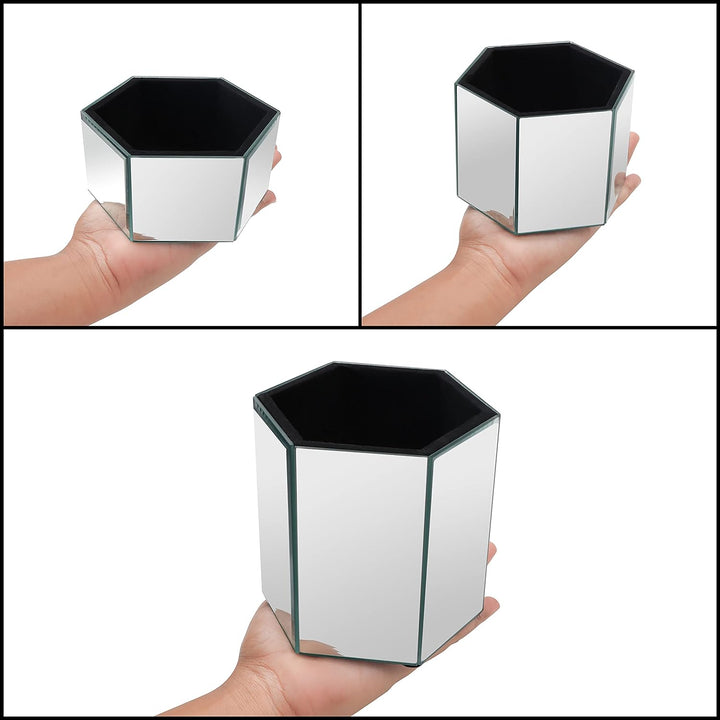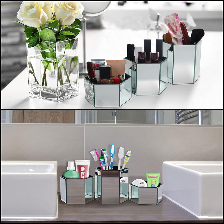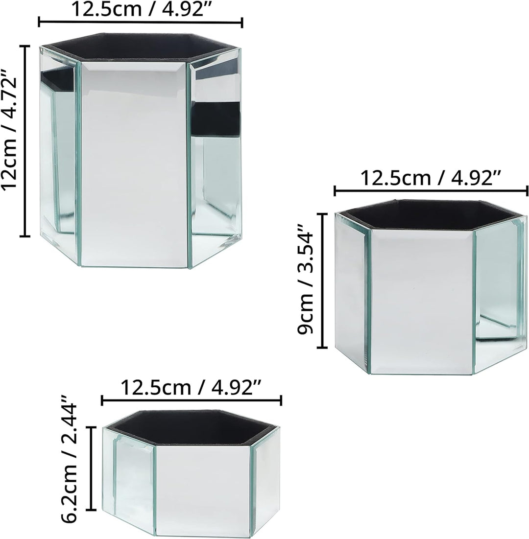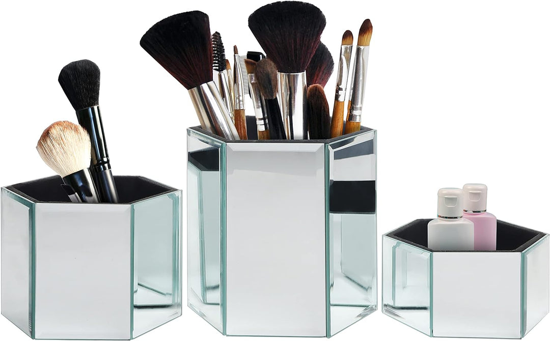 - 3 AUFBEWAHRUNGSBEHÄLTER: Dieses Set beinhaltet 3 sechseckige Pinselhalter Silber. Die Pinsel Cup Halter besitzen verschiedene Grössen: klein, mittel und gross. Die Make Up Becher bestehen aus stabilem Spiegelglas und sind innen mit Filz ausgekleidet.