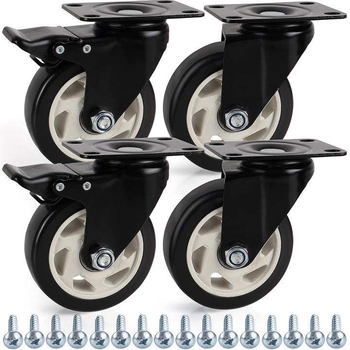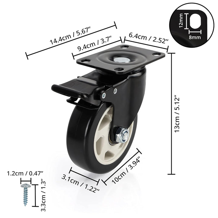 - STABILE SCHWERLASTROLLEN: Unser Set enthält 2 stabile Möbel Rollen ohne Bremse und 2 Lenkrollen mit Bremse. Sie sind mit festen Eisenplatten ausgestattet und messen H13 x B14,4 cm. Die Rollen haben einen Durchmesser von 10 cm, die Eisenplatten messen