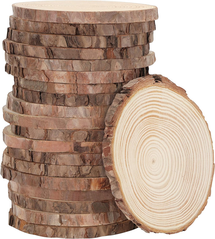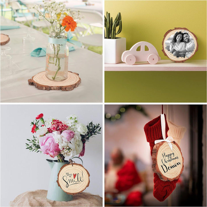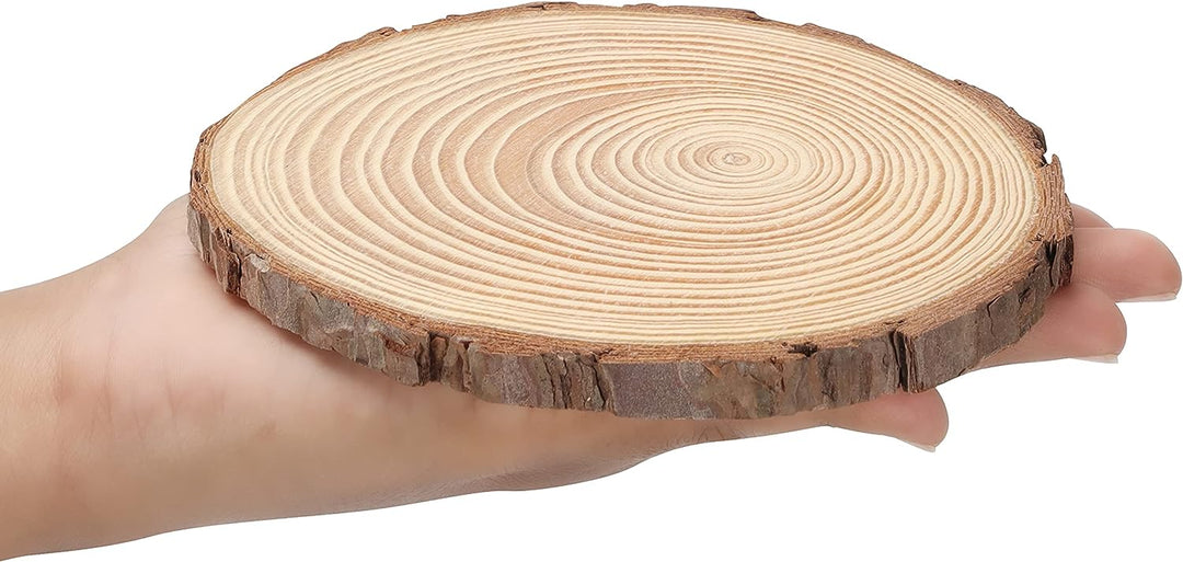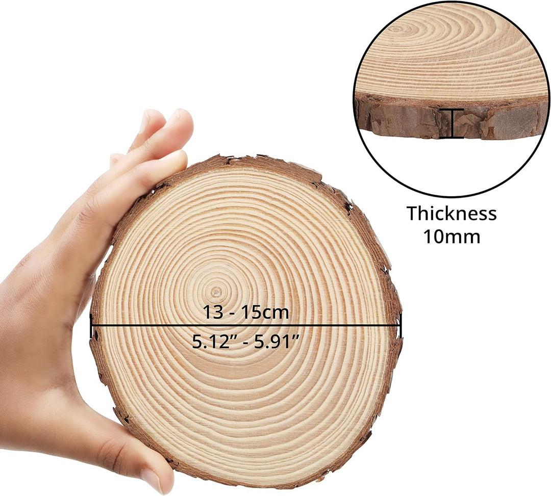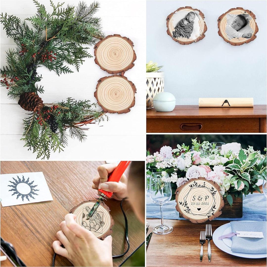 - NATÜRLICHES & RUSTIKALES AUSSEHEN: Alle Holzscheiben zum Basteln sind blank und wurden für eine glatte und geschmeidige Oberfläche abgeschliffen und poliert. Die Rinde, die die Aussenseite jeder Scheibe umgibt, vermittelt ein natürliches und echtes