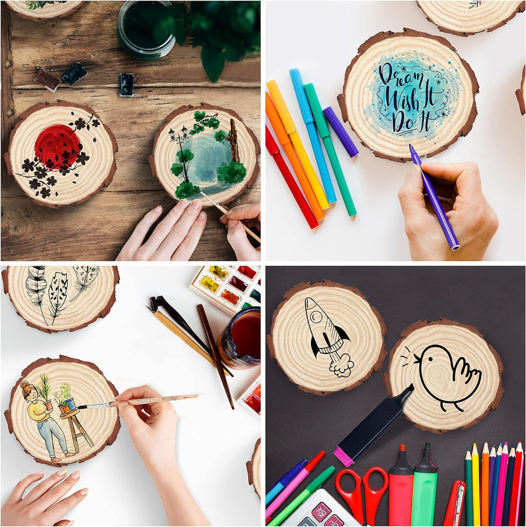 - EINFACH ZU DEKORIEREN: Unsere Baumscheiben zum Basteln wurden abgeschliffen und lassen sich daher leicht bemalen, gravieren oder für Pyrographie brennen. Sie können sie sogar direkt aus der Schachtel heraus als Holzuntersetzer für Gläser verwenden.