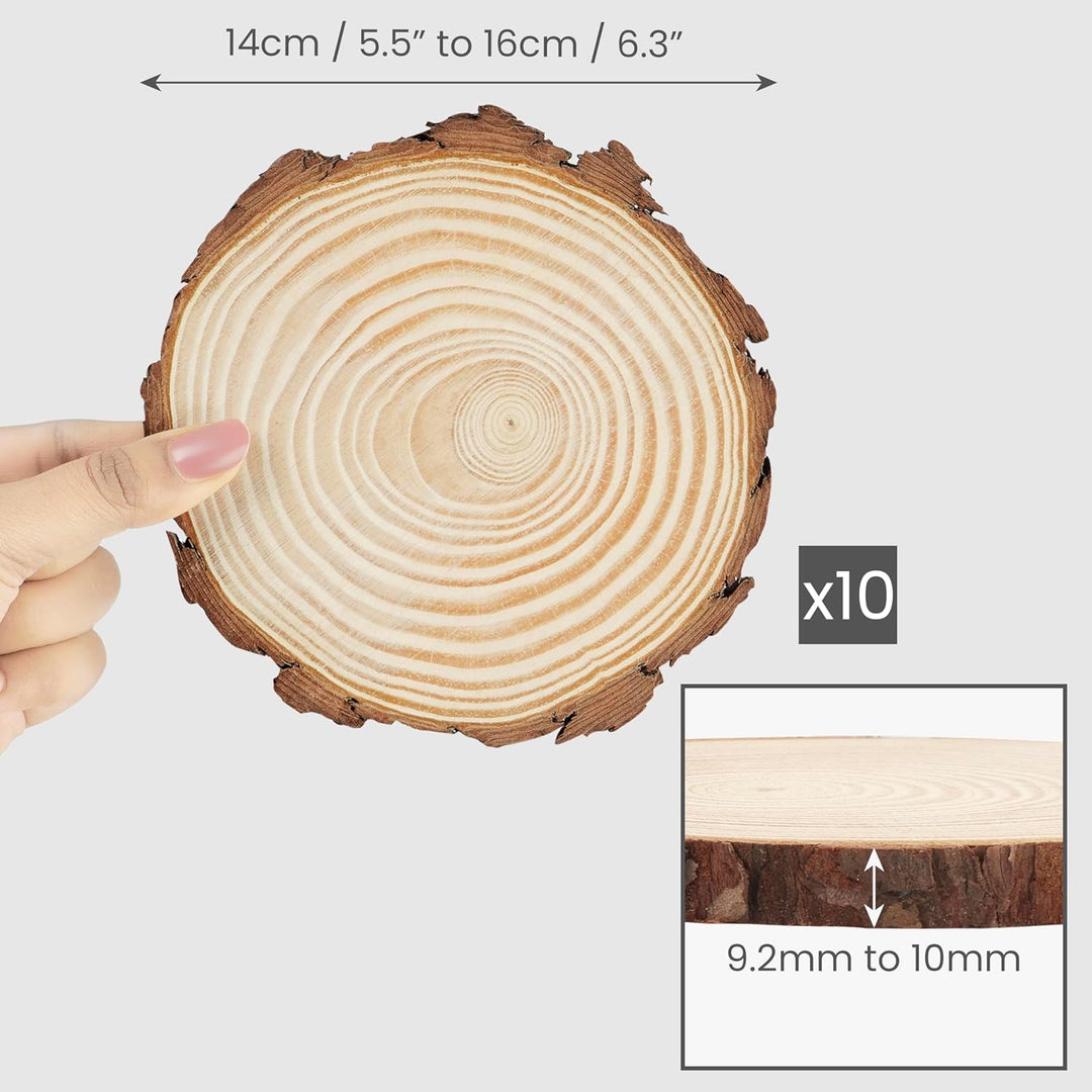 - RUSTIKALE HOLZSCHEIBEN DEKO: In unserem Set sind 10 natürliche Holzscheiben klein enthalten. Sie sind zwischen 14-16 cm gross und haben eine ungefähre Dicke von 9,2-10 mm. Alle Scheiben in unserem Set sind glatt und unbearbeitet. Da diese