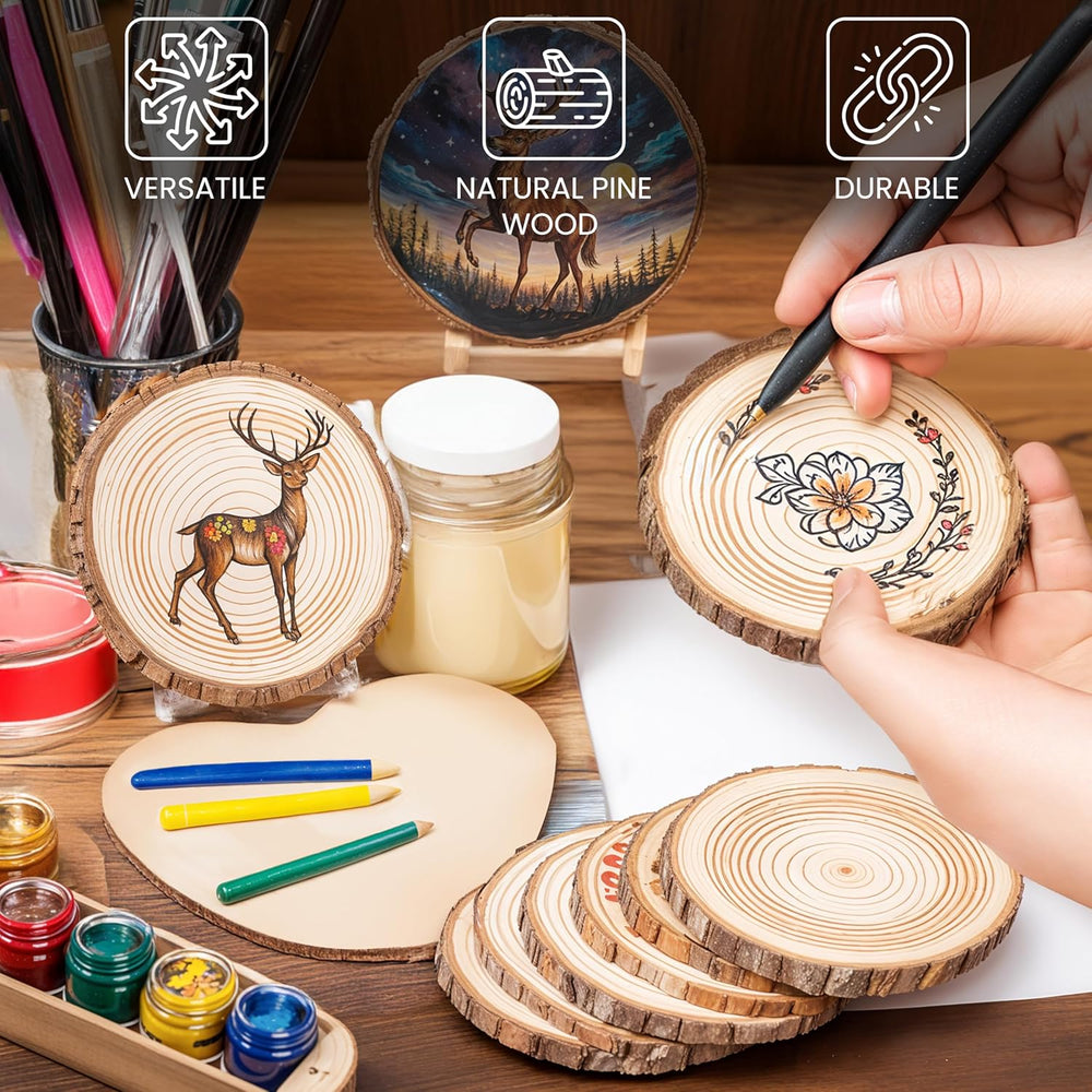 - GESCHLIFFEN UND GEBRAUCHSFERTIG: Jede Holzplatte rund ist gebrauchsfertig. Da das Holz unbehandelt ist, sind sie vielseitig einsetzbar. Sie können ohne Grundierung auf das Holz malen, was sie perfekt als Deko macht. Sie können mit Acrylfarben,