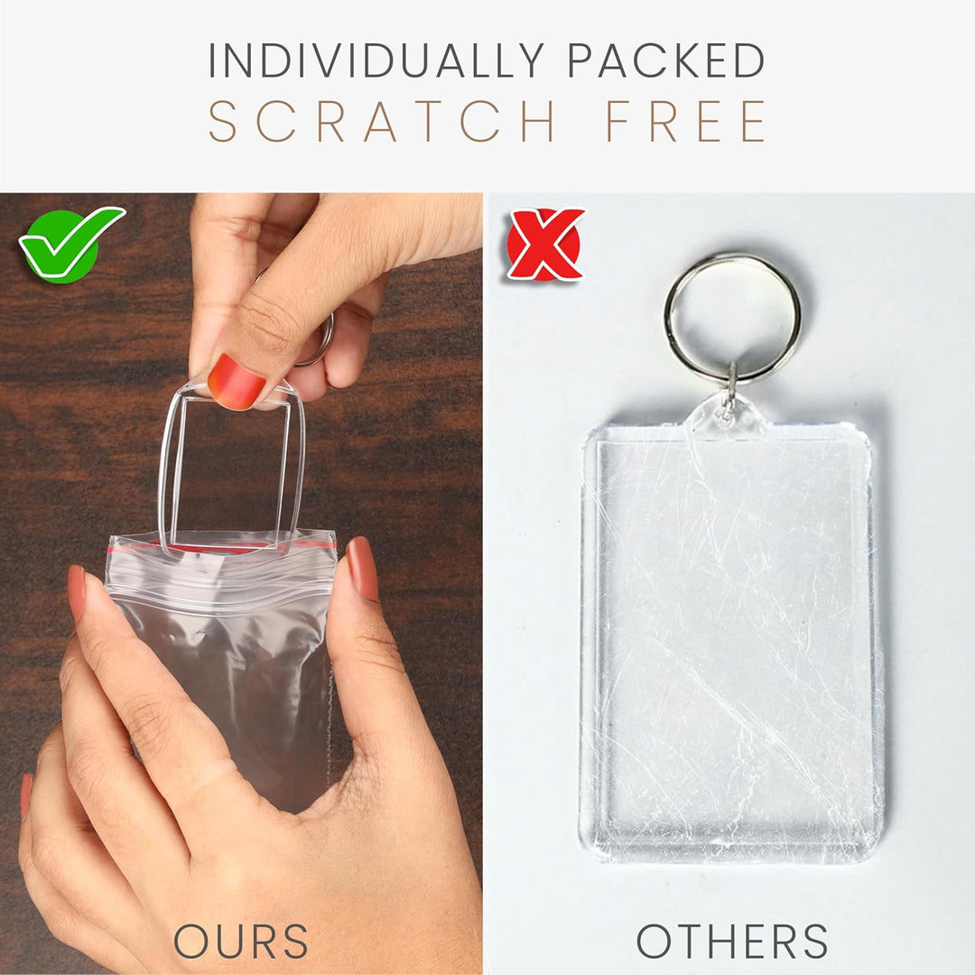 - 200 SCHLÜSSELANHÄNGER ZUM BASTELN: In diesem Set sind 200 leere rechteckige Fotorahmen-Schlüsselanhänger enthalten. Jeder Schlüsselanhänger ist aus hochwertigem Acryl gefertigt und misst insgesamt 5,4 x 3,4 cm. Diese Schlüsselanhänger können