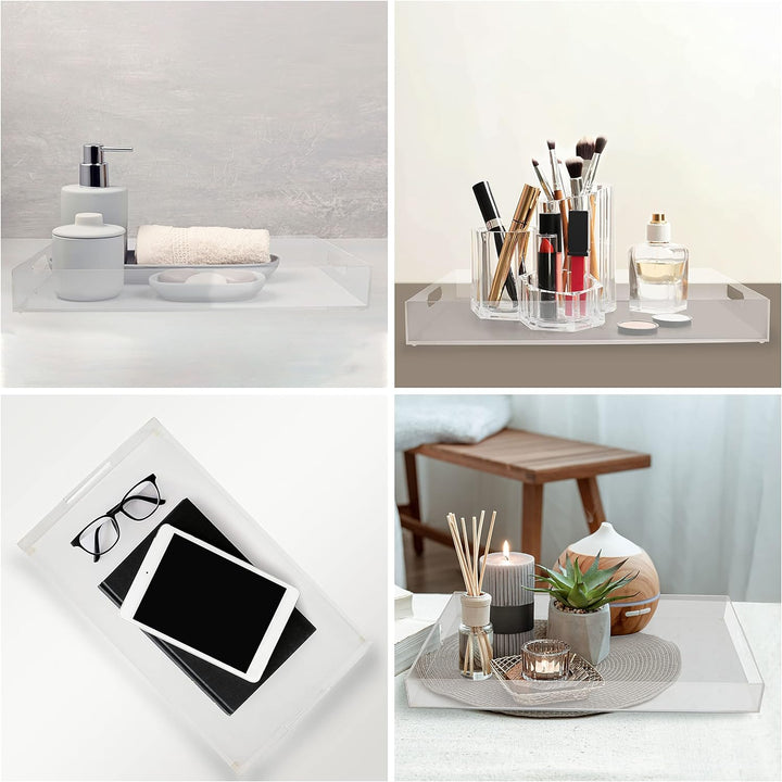 - EINFACH ZU REINIGEN: Das kristallklare Acryl ist dicht und leicht zu reinigen. Wischen Sie Krümel und Verschüttetes einfach mit einem feuchten Tuch weg. Das transparente Tablett Deko passt zu jeder Dekoration und ist ideal als Geschenk zum Einzug oder zum Geburtstag. Das vielseitige Tablett mit Griff ist auch perfekt als Tropfschale oder Untersetzer, damit Tischoberflächen sauber und geschützt bleiben. Dieses Serviertablett mit Henkel kann in Schublade oder Schrank ordentlich verstaut werden.