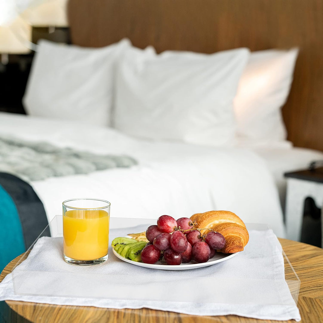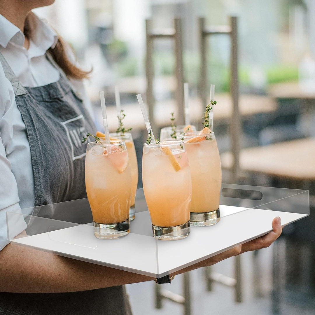 - KLARES ACRYL: Jedes klare Acryl Tablett ist modern und ansprechend. Die Seiten sind erhöht, um den Inhalt fest zu halten. Jedes Serviertablett gross besitzt an den Enden 2 bequeme ausgeschnittene Tragegriffe, um sie leicht zu transportieren. Ideal als Frühstück im Bett Tablett oder um Vorspeisen, Hauptspeise und Dessert im Restaurant stilvoll zu servieren. Man kann auf dem Tablett Plastik auch mehrere Getränke sicher befördern, wie Wasser, Tee, Kaffee und Cocktails für Familie, Freunde und Gäste.