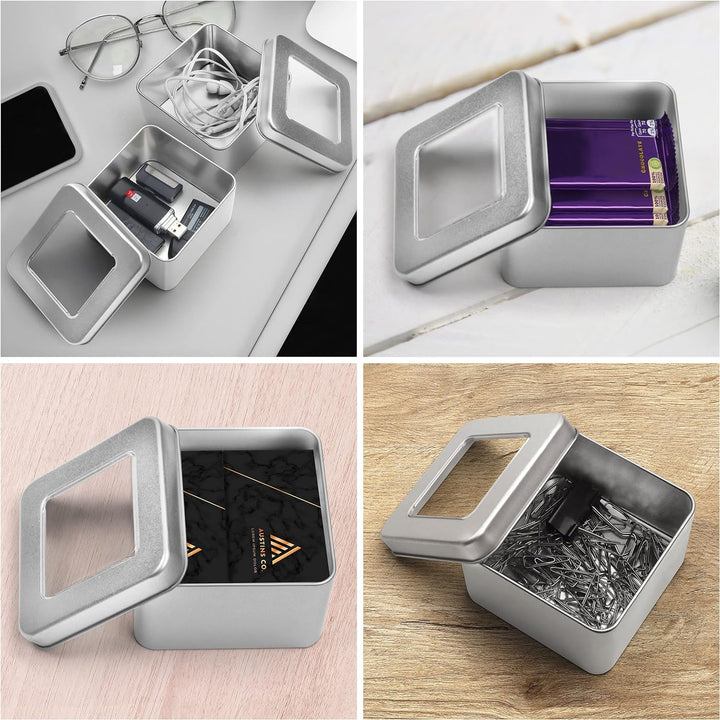 - DURCHSICHTIGE DECKEL: Auf der Oberseite der Deckel befindet sich eine hochwertige transparente Kunststoffplatte. Mit der Verkleidung können Sie in die kleine Dose schauen, ohne die Deckel entfernen zu müssen. Diese Deckel werden auf die Box gedrückt und sind nicht über ein Scharnier befestigt, sodass sie vollständig entfernt werden können. Die Deckel schützen den Inhalt der Dosen vor Verschütten, Staub und Beschädigungen. Desweiteren sind unsere Mini Dosen sind rostfrei.