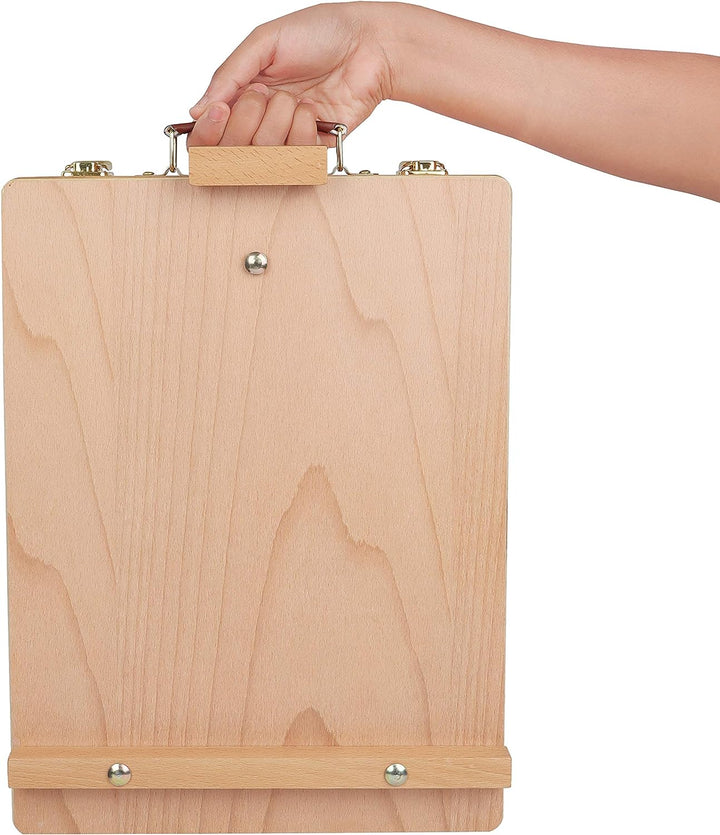 - TRAGBARER MALKOFFER HOLZ: Wenn der Tischstaffelei Koffer nicht verwendet wird, kann der kompakte Koffer verstaut werden. Oben am Koffer befindet sich ein Henkel, wodurch die Staffelei ideal für unterwegs ist. Unter der Malplatte befindet sich eine