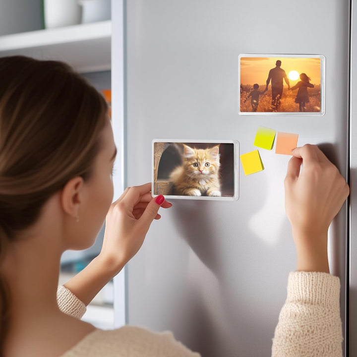 - 50 LEERE BILDERRAHMEN MAGNETE: In diesem Bilderrahmen Magnet Set sind 50 langlebige leere Kühlschrankmagnete klein (rechteckige Fotorahmen) enthalten. Jeder magnetische Bilderrahmen ist aus hochwertigem Acryl gefertigt und misst insgesamt 7,7 x 5,1 cm.