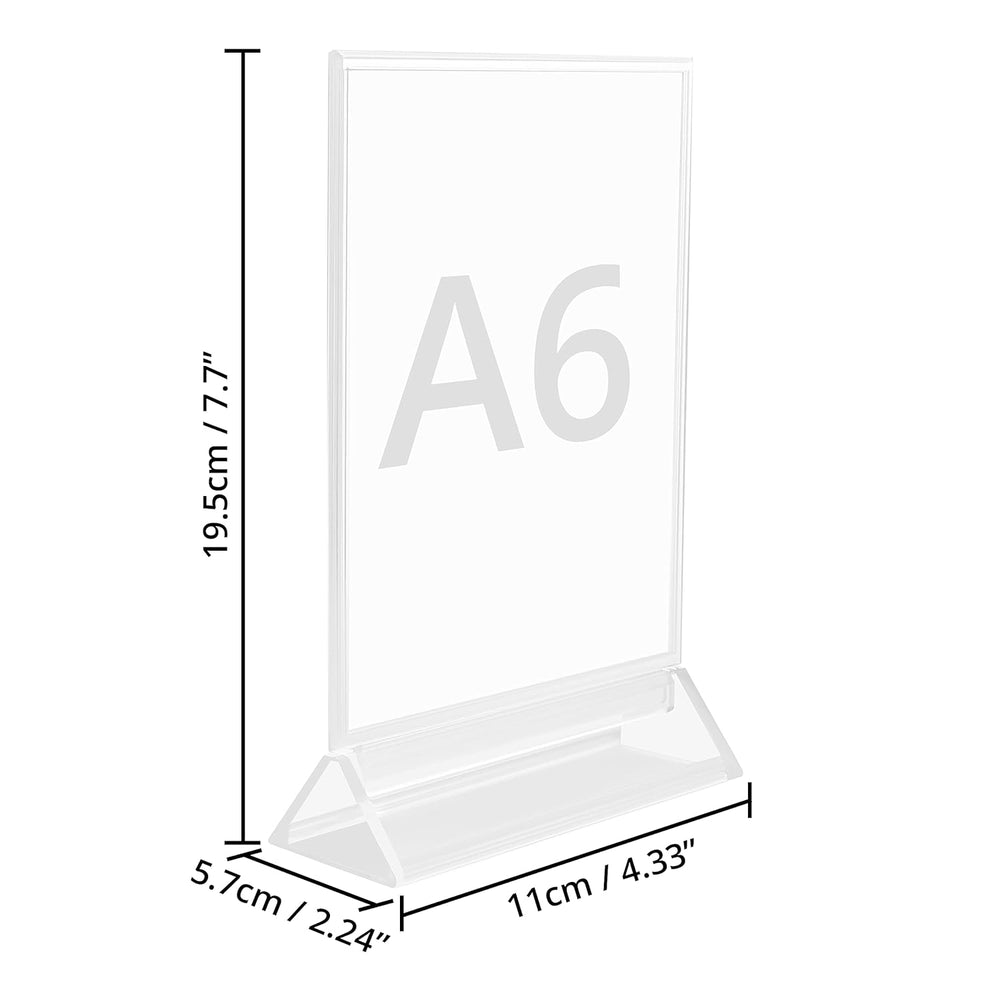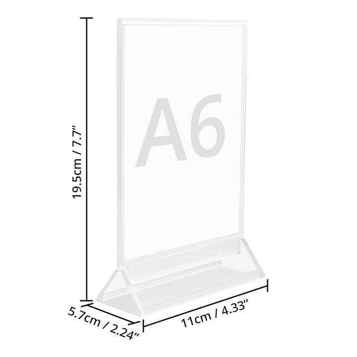 - 6 A6 ACRYL TISCH AUFSTELLER: In diesem Set sind 6 hochwertige Acryl Ständer enthalten. Diese Halter sind 11 cm lang, 5,7 cm breit und 19,5 cm hoch und sind perfekt für Flyer der Grösse A6. Unsere Acryl Aufsteller sind aus hochwertigem PS-Kunststoff,