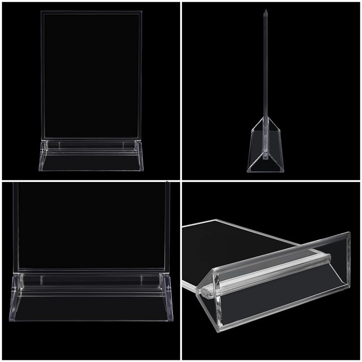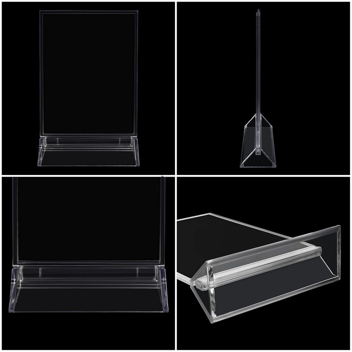 - KLARES PLASTIK: Unsere Crystal Flyer Aufsteller sind aus kristallklarem Kunststoff, um eine gute Sichtbarkeit Ihres Flyers zu ermöglichen. Die Schilder sind doppelseitig durchsichtig, sodass Sie zwei verschiedene Schilder auf einmal anzeigen können.