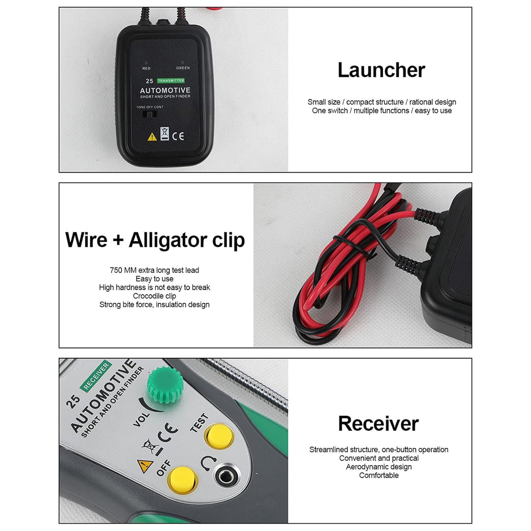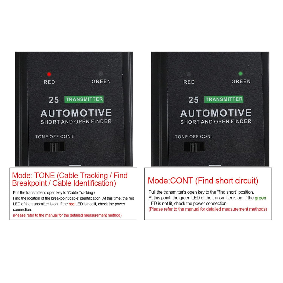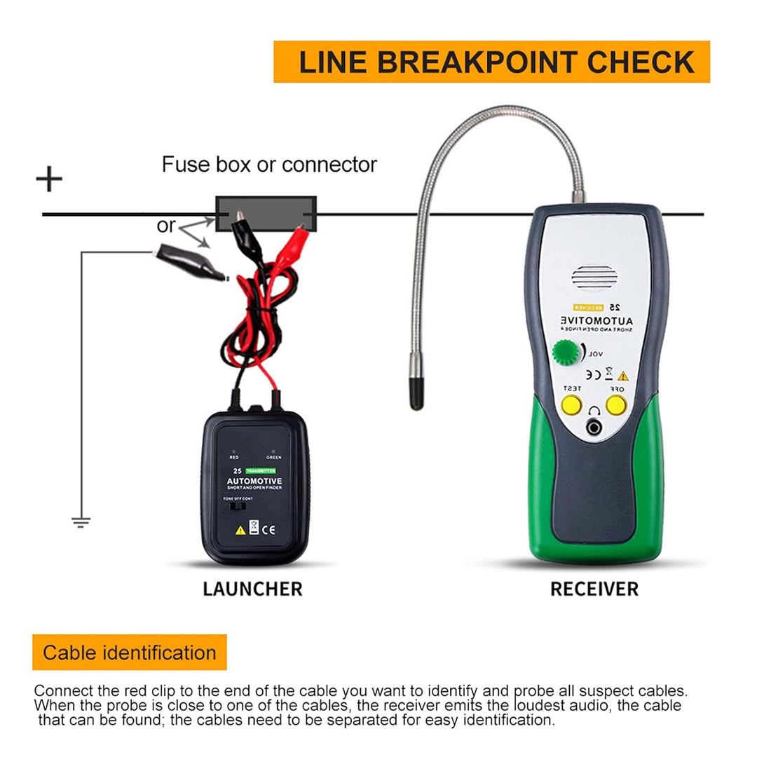 - Mehrere Funktionen --- Dieses Kfz-Kurzschluss-Reparatur-Tester-Tool wird verwendet, um Sie sofort zu erkennen und zu warnen, wenn ein Stromkreis offen ist. Sie können Kurzschlüsse, offene Verbindungen, Kabelbrüche, Stromlecks schnell und einfach