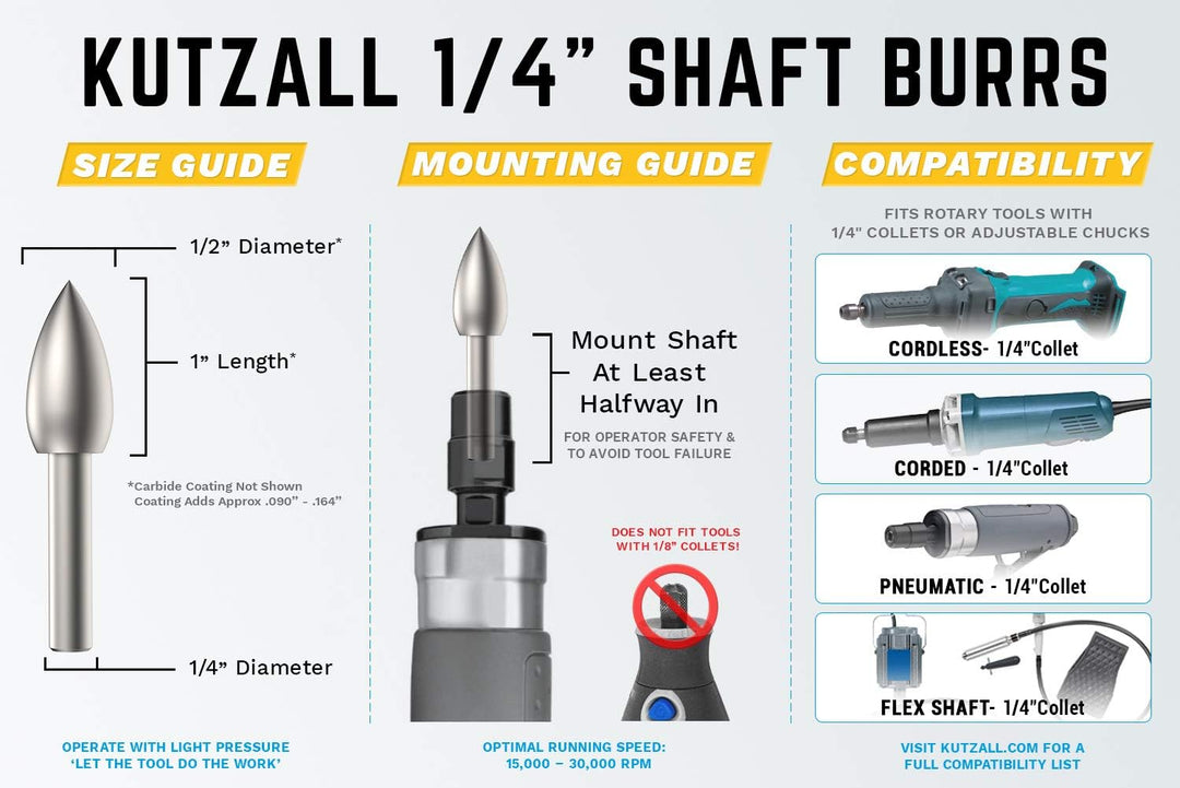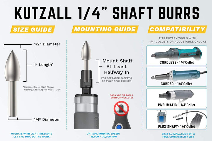 Kutzall Extrem Flame Rotationsfräser, 1⁄4" Schaft, sehr grob - Holzbearbeitungsaufsatz für Bosch, De
