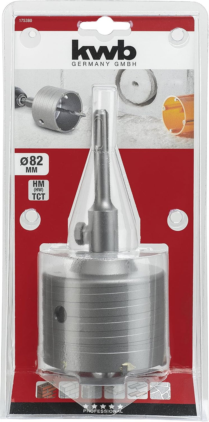 kwb Hohl-Bohrkrone 82 mm Durchmesser-Grösse, Hartmetall, SDS Plus Schaft, schlagbohrfest. inkl. Zent