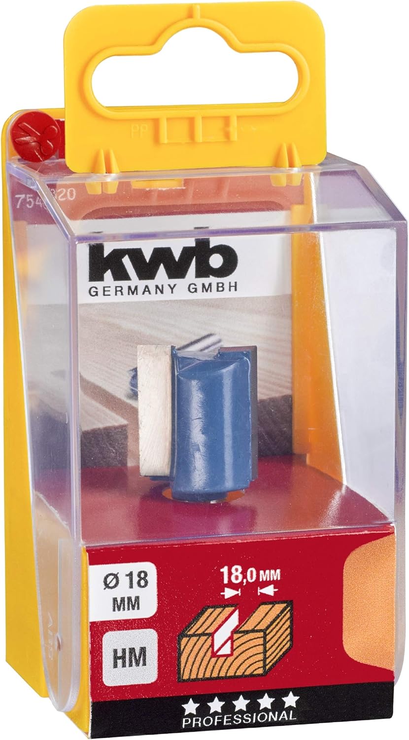 - HARTMETALLBESTÜCKT: Der 2-schneidige kwb Nutfräser für Oberfräsen verfügt über eine hartmetallbestückte, präzisionsgeschliffene Schneide, die eine sehr hohe Standzeit in harten sowie weichen Hölzern besitzt.
