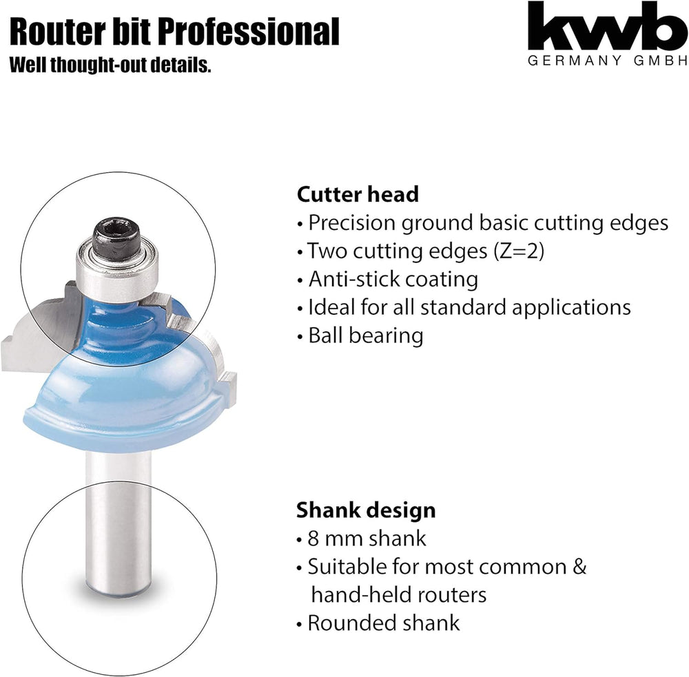 - HARTMETALLBESTÜCKT: Der 2-schneidige kwb Profilfräser für die Oberfräse verfügt über eine hartmetallbestückte, präzisionsgeschliffene Schneide, die eine sehr hohe Standzeit in harten sowie weichen Hölzern besitzt.