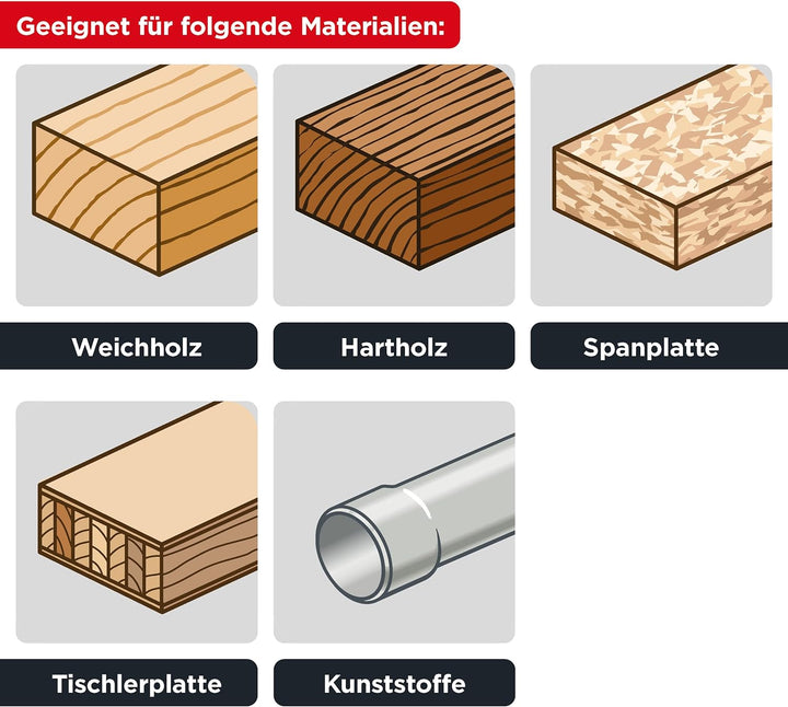 - MATERIALEIGNUNG: das präzise Blatt schneidet problemlos in alle Holzwerkstoffe wie Weichholz- und Hartholz, OSB, Leimholz, Tischlerplatten, Multiplex, MDF, beschichtetet Holzplatten und Kunststoffe.