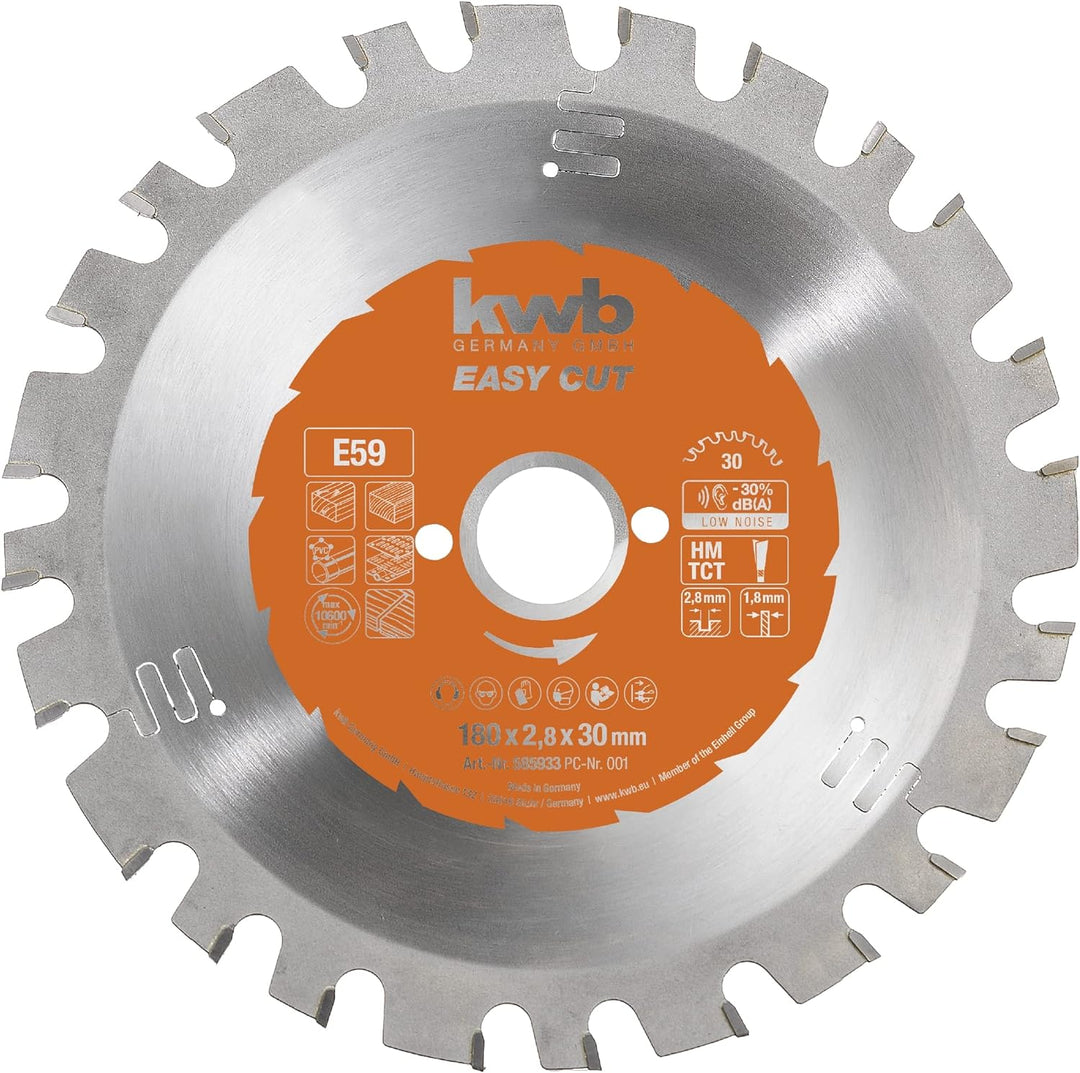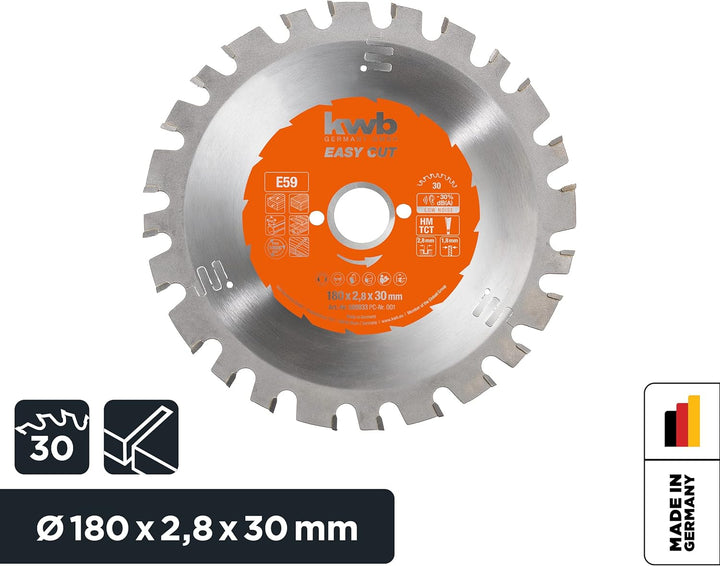 kwb Kreissägeblatt 180 x 30 mm, Made in Germany, Nagelfest, für Holz mit Metallresten, Universal Säg