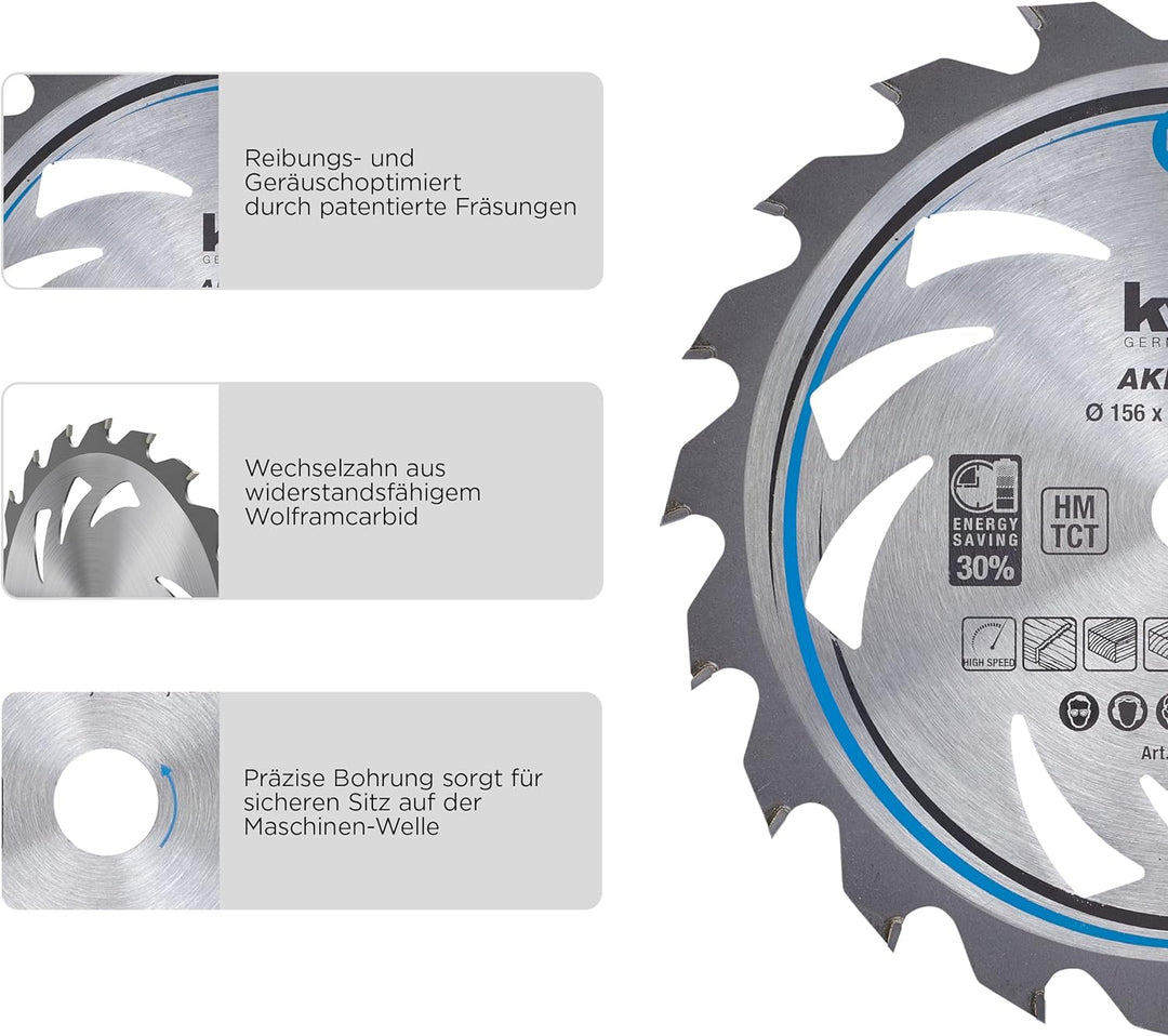 - SCHNELLE ARBEITSLEISTUNG: mit patentierten Spannuten und spezieller Zahngeometrie lässt sich ein bis zu 30% erhöhter Arbeitsfortschritt in Weich-und Hartholz, Plattenmaterial, Spanplatten, Konstruktionsholz erzielen.