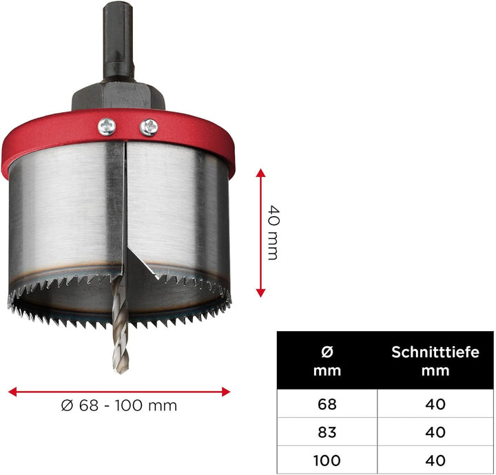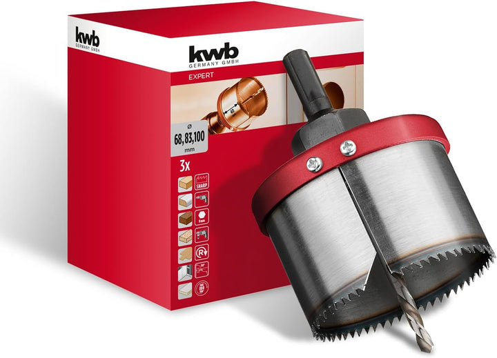 kwb Mehrkranzlochsäge aus Wolframstahl Ø 68, 83 und 100 mm mit guter Schnittleistung, langer Lebensd