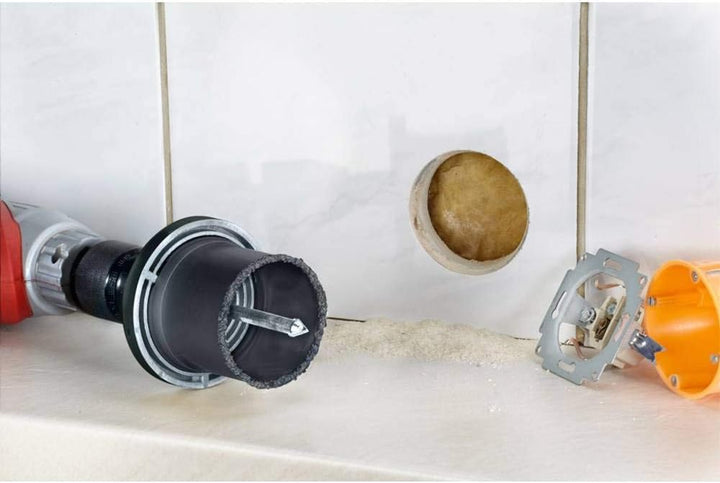 - Für ausgibige Installationsarbeiten mit Rohrdurchlässen, Steckdosen und Verteilerdosen in Gasbeton, Mauerwerk, Fliesen, Keramik, Naturstein, Leichtbauplatten, Gipskarton und Kustofffen.