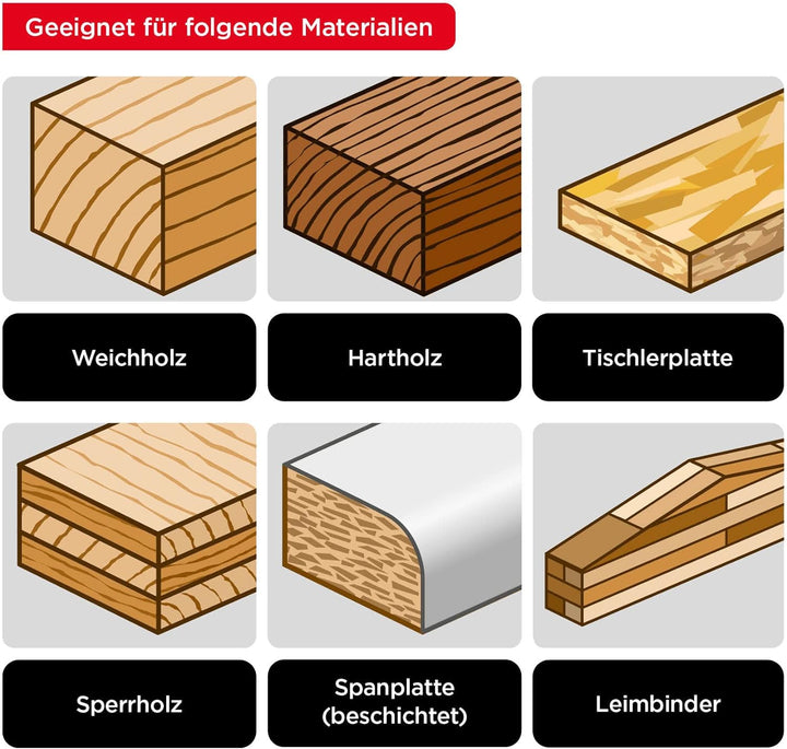 - GEHÄRTETE SCHNEIDEN: Die gehärteten Schneiden des Forstnerbohrers haben eine lang anhaltende, gleichbleibende Schärfe für ausrissfreie Bohrlochkanten bei beschichteten Spanplatten, MDF-Platten, furniertem Holz, Tischlerplatten, Hart- und Weichholz.