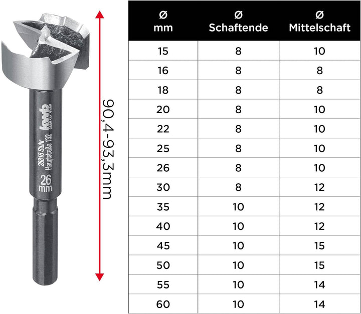 - POLIERTE OBERFLÄCHE: Dank der polierten Oberfläche des kwb Forstnerbohrers verringert sich die Reibung, sodass sich die Wärmeentwicklung und Einbrandgefahr im Bohrloch reduziert.