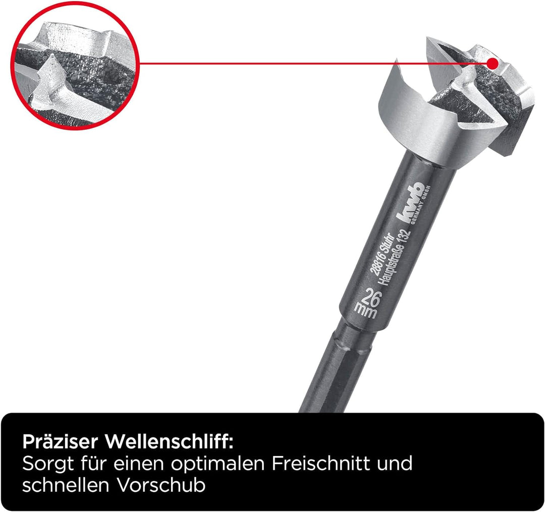 - PRÄZISER WELLLENSCHLIFF: Der Forstnerbohrer verfügt über einen patentierten Präzisions-Wellenschliff für einen optimierten Freischnitt und schnelleren Vorschub im Bohrloch.