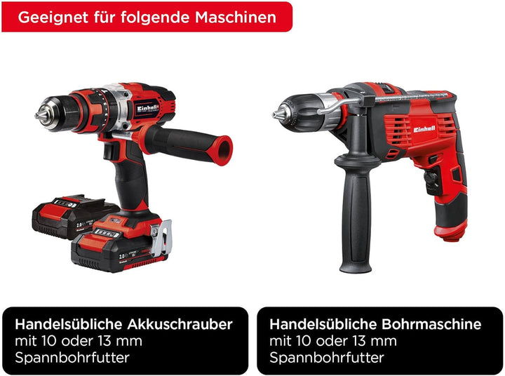 - SECHSKANTANSCHLIFF: Der abgesetzte Schaft mit Sechskantanschliff gewährleistet optimalen Halt in allen Dreh- und Schlagbohrmaschinen mit 10 oder 13 mm Bohrfutter.