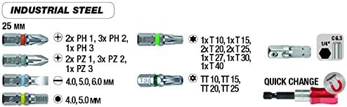 - Der qualitative Bit-Satz ist aus hochwertigem TQ60 Stahl gefertigt, für eine lange Lebensdauer im täglichen Werkstatt-Einsatz. (Artikelnummer: 162700)