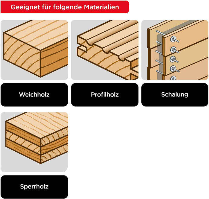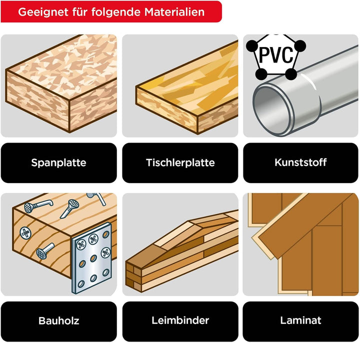- FLEXIBLER HCS-STAHL: Durch die Fertigung aus HCS Kohlenstoffstahl besteht eine geringe Bruchgefahr beim Arbeiten mit den Stichsägeblättern für Holz.
