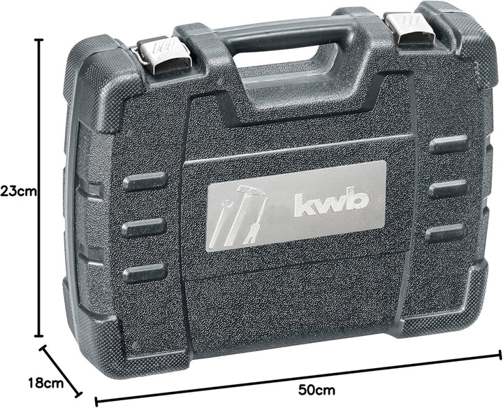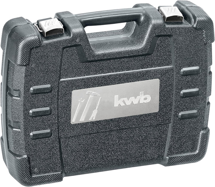 - Aus Hart-Kunststoff in Schwarz mit kwb Logo-Applikation aus Metall. Aufklappbar und stossfest aus bis zu 1 Meter Fallhöhe.