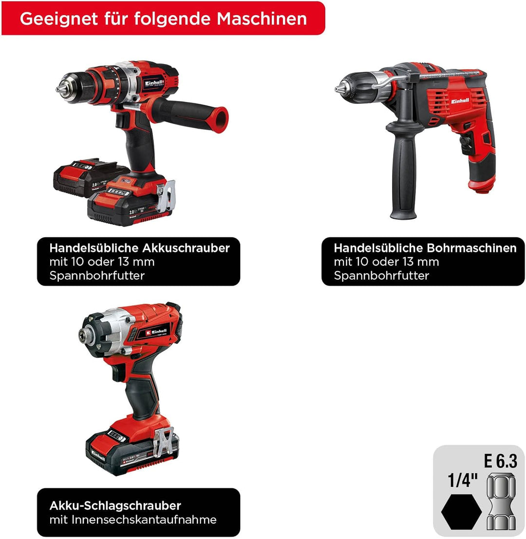 - E 6.3 SCHAFT: Der kwb Schlangenbohrer ist mit einem Sechskantschaft 1/4“ nach ISO 1173 ausgestattet und somit auch für kraftschonende Bohrungen in Akkuschraubern mit Sechskantaufnahme geeignet.