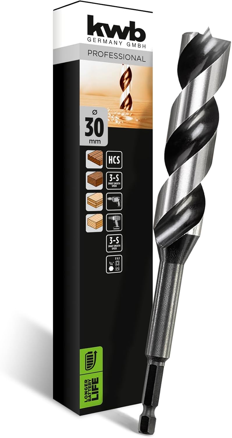 - SPEZIELLER SPITZENANSCHLIFF: Durch den speziellen Spitzenanschliff und die breite Spirale erzeugt der Schlangenbohrer von kwb kleine Holzspäne, die schneller abtransportiert werden können.