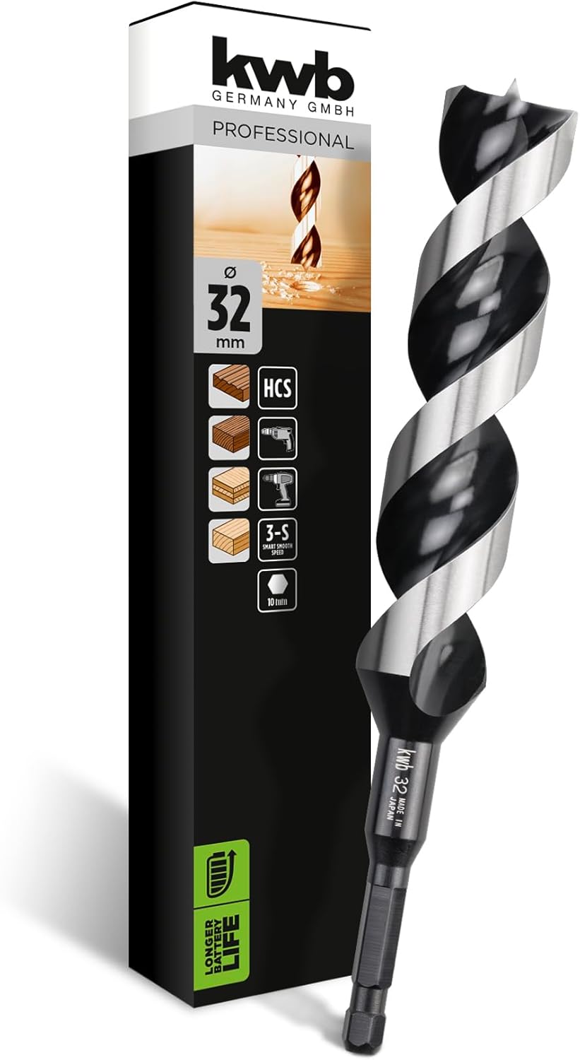 • SUPERSCHARFER SPITZENANSCHLIFF: Dank des superscharfen Spitzenanschliffs und der Hauptschneide gelingt mit dem kwb Schlangenbohrer ein absolut ausrissfreies Bohren in allen Hart- und Weichhölzern.