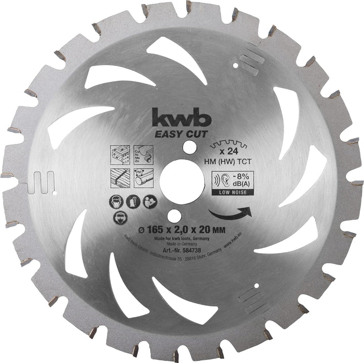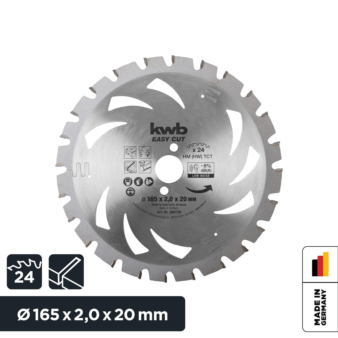 - Durchmesser: 165 x 20, Schnittstärke: 2,0, Schnittbreite: 1,4, Zähne: 24