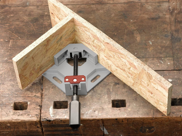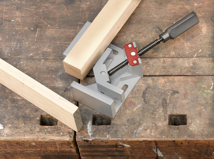 • FLEXIBEL: dank der drehbaren Spindel- und Backenlagerung lassen sich auch 2 unterschiedlich dicke Werkstücke im 90-Grad Winkel miteinander verbinden.