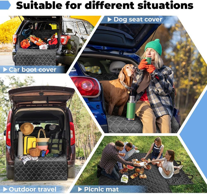 - UNIVERSAL & MULTIFUNKTIONAL: Die Kofferraum Schutzmatte für Hunde (185 x 105 cm) von KYG passt für die meisten gängigen Fahrzeuge, wie SUVs, Kombis, Kleinwagen etc. Die Hundedecke Schutzmatte kann auch als Picknickdecke für die ganze Familie